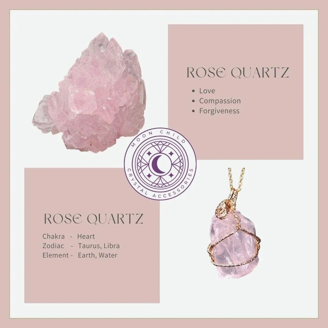 Rose quartz healing properties are related to the heart chakra and love. It can purify, open, and balance the heart on all levels, and promote self-healing, friendship, peace, and forgiveness.